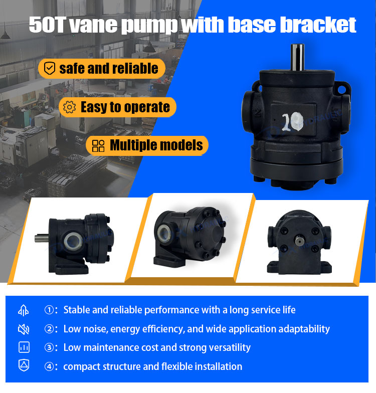 Конструкция базового кронштейна повышает универсальность и простоту установки. Он обеспечивает надежную поддержку узла насоса и двигателя, обеспечивая точное выравнивание и снижая нагрузку на валы и муфты. Это интегрированное монтажное решение сокращает время установки и упрощает работы по техническому обслуживанию. Благодаря компактной конструкции, низким требованиям к техническому обслуживанию и гибкому диапазону применения лопастной насос 50T с опорным кронштейном является практичным и экономичным выбором для надежной подачи гидравлической энергии.
