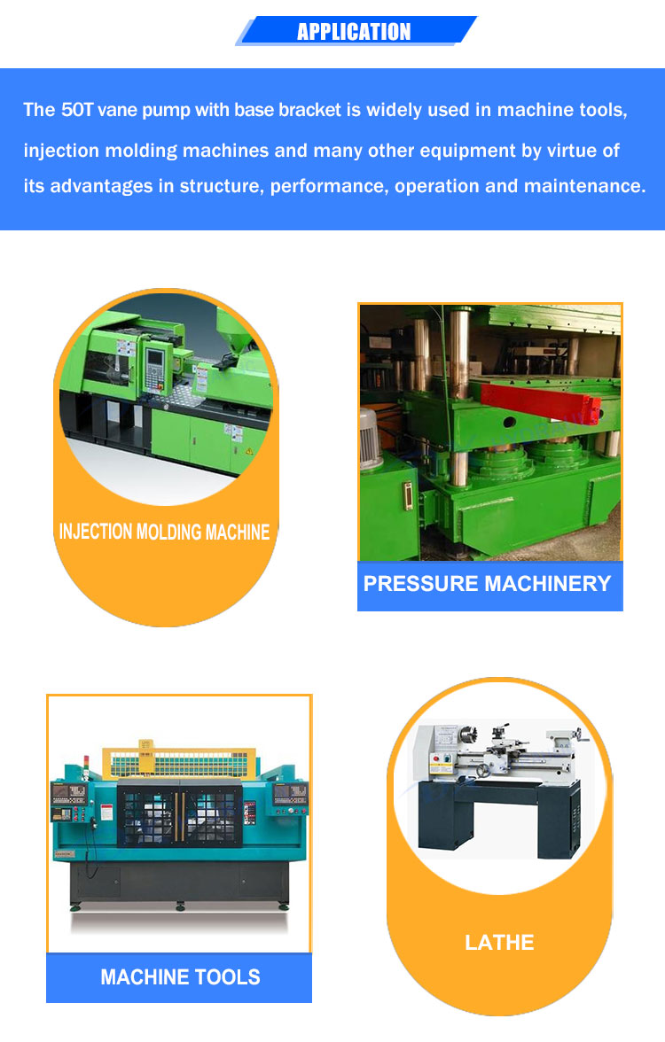 Лопастной насос 50T с опорным кронштейном широко используется в станках, машинах для литья под давлением и многом другом оборудовании благодаря своим преимуществам в конструкции, производительности, эксплуатации и техническом обслуживании.