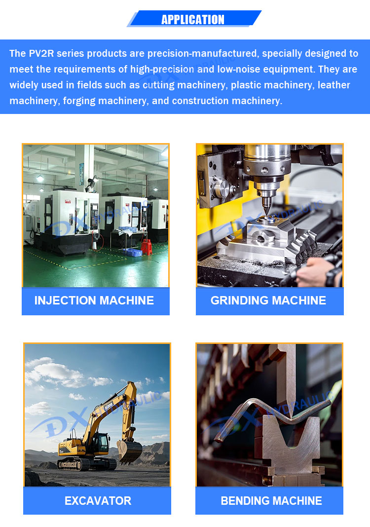 Продукты серии PV2R изготовлены с высокой точностью и специально разработаны для удовлетворения требований высокоточного и малошумного оборудования. Они широко используются в таких областях, как режущее оборудование, оборудование для обработки пластмасс, оборудование для обработки кожи, ковочное оборудование и строительная техника.