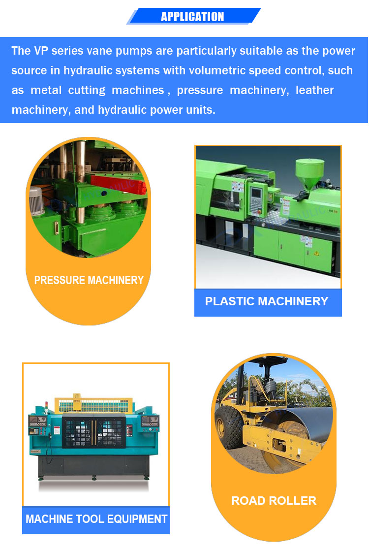 Пластинчатые насосы серии VP особенно подходят в качестве источника энергии в гидравлических системах с объемным регулированием скорости, таких как металлорежущие станки, машины под давлением, кожевенные машины и гидравлические силовые агрегаты.